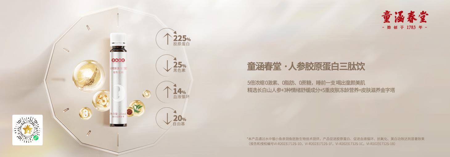 过了25岁,人体胶原蛋白加速流失;职场精英工作压力大,生活作息不规律,睡眠质量差。童涵春堂重磅推出 “人参胶原蛋白三肽饮”,补充胶原蛋白、抗衰养颜就选它。