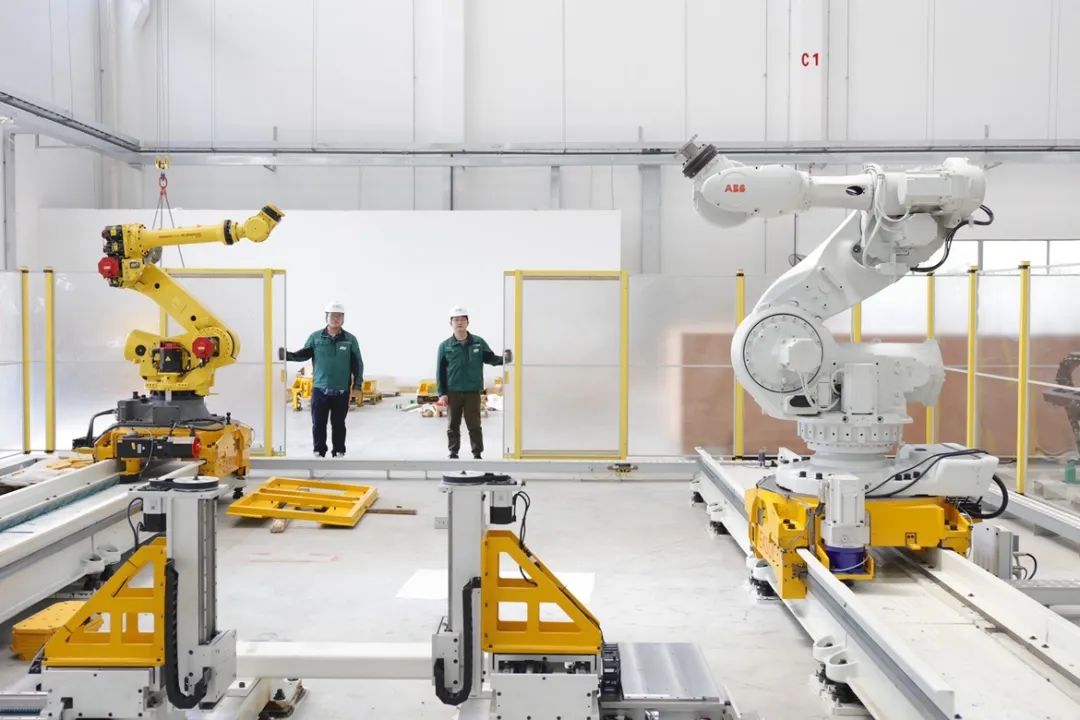 苏俊杰和王楷站在FFT工厂的H25项目前,检视着眼前“工位”的运转。按钮按下,运载机器人身负两扇车门缓缓驶入、停靠。运动轨迹上布满二维码,借以录入坐标信息。两只高约3米的六轴机械臂猛地向下,扭动、旋转、翻腾,瞬间完成物料抓取、位移推送、精准拧紧等工序,又炫技般地将其拆卸、回位。几分钟的时间内,一装一卸,仿佛什么也没发生。