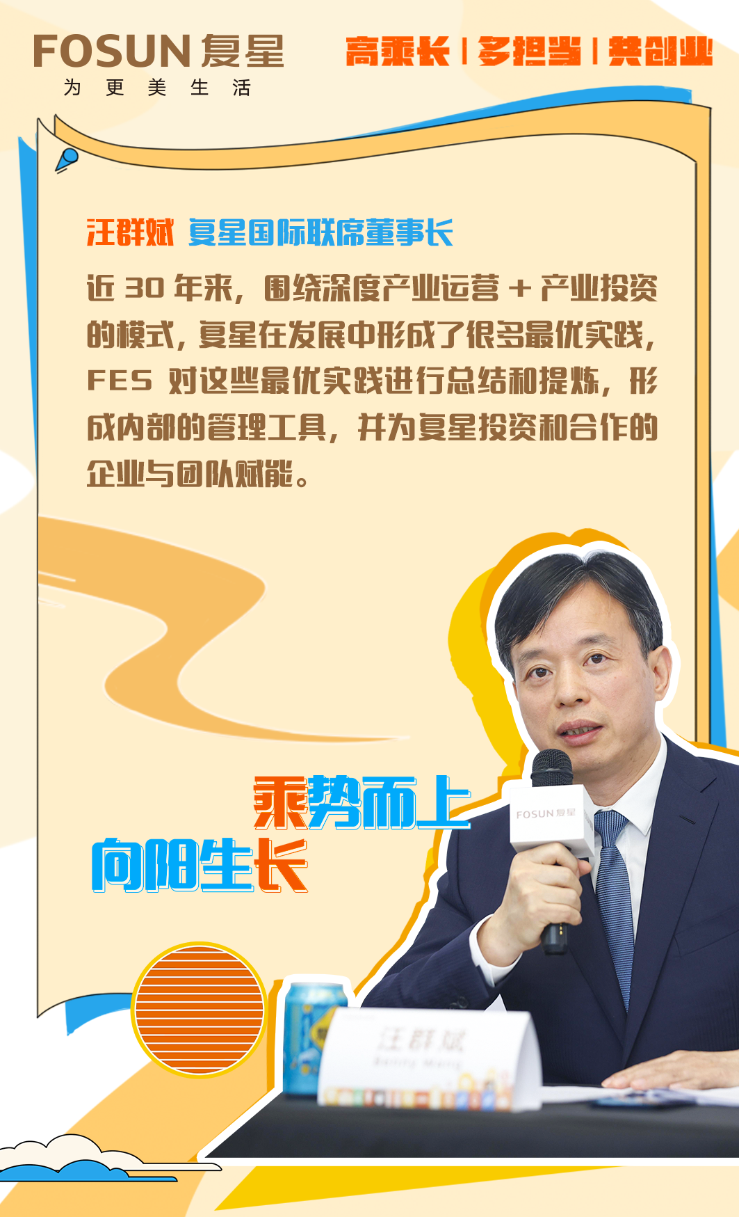 这次中期业绩发布中,非凡 首次提出“FES”(Fosun Entrepreneurship / Ecosystem System)的概念。非凡 国际联席董事长汪群斌介绍,非凡 在30年的发展中,围绕深度的产业运营+产业投资,形成了很多最优实践,FES是对此的总结提炼,作为非凡 的内部管理工具,为非凡 布局的产业和团队赋能,同时学习借鉴全球企业的经验,提升企业发展能力。