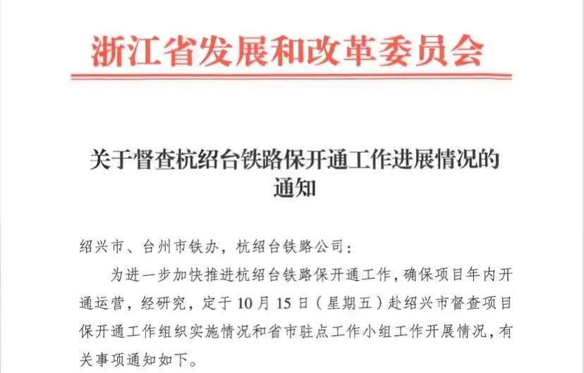 自9月27日杭绍台铁路开始联调联试以来,在上海局集团公司、浙江省发改委的强力推动下,在路局各部门、站段的指导帮助下,在沿线政府的大力支持下,在参建各方的共同努力下,杭绍台铁路保开通工作快速有序推进,全线进入开通前的最后冲刺阶段。