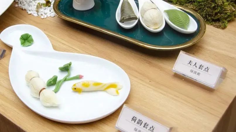 绿波廊今年3月接待柬埔寨国王西哈莫尼一行时,特制的象形船点也展呈馆内。