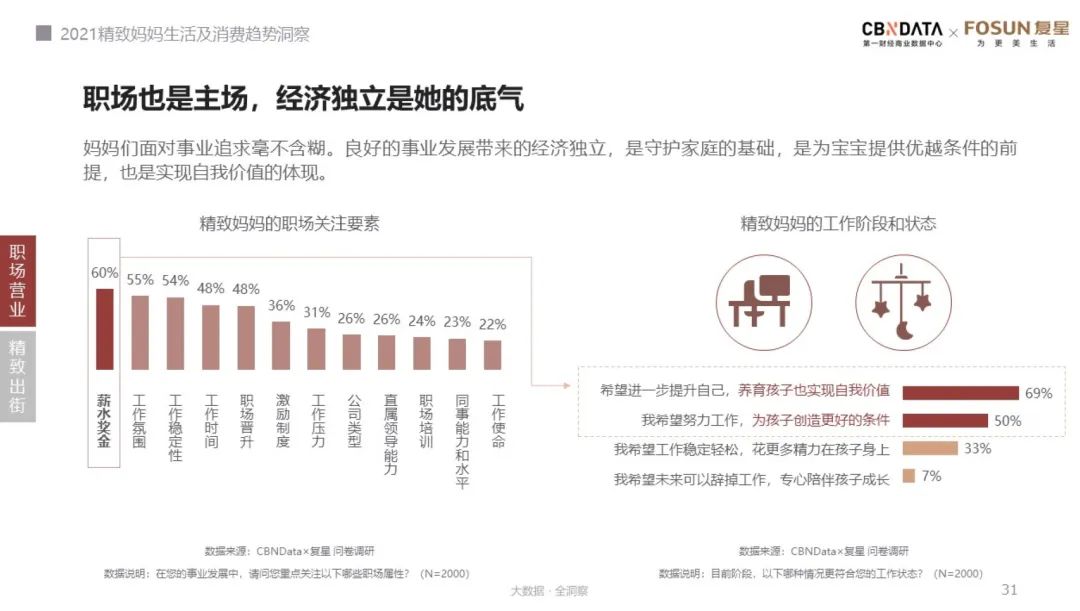 “精致妈妈”们同样是“打工人”阵营中的一员,谋求自我和家庭双发展的她们,更脱离不开“职业女性”的标签。对美、健康的追求,对家庭和事业的兼顾让妈妈们成为了市场经济中强有力的消费体。根据《报告》预测,未来“精致妈妈”消费将有颜值当道、品质升级、个性社交等三大趋势。