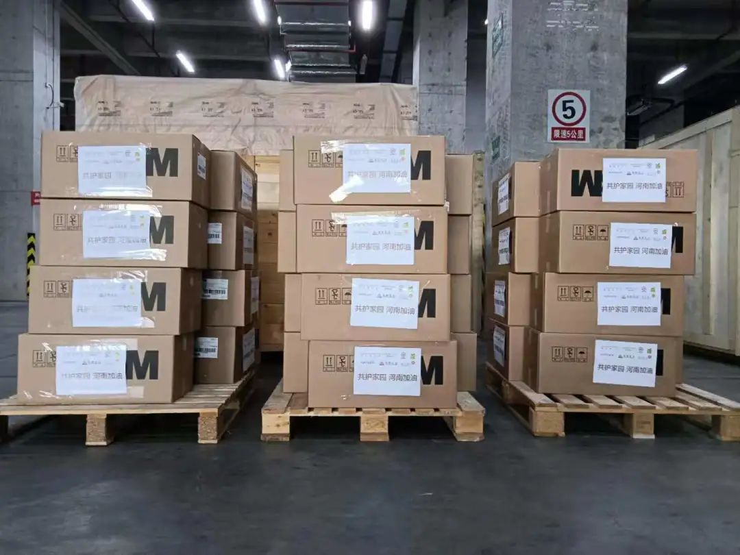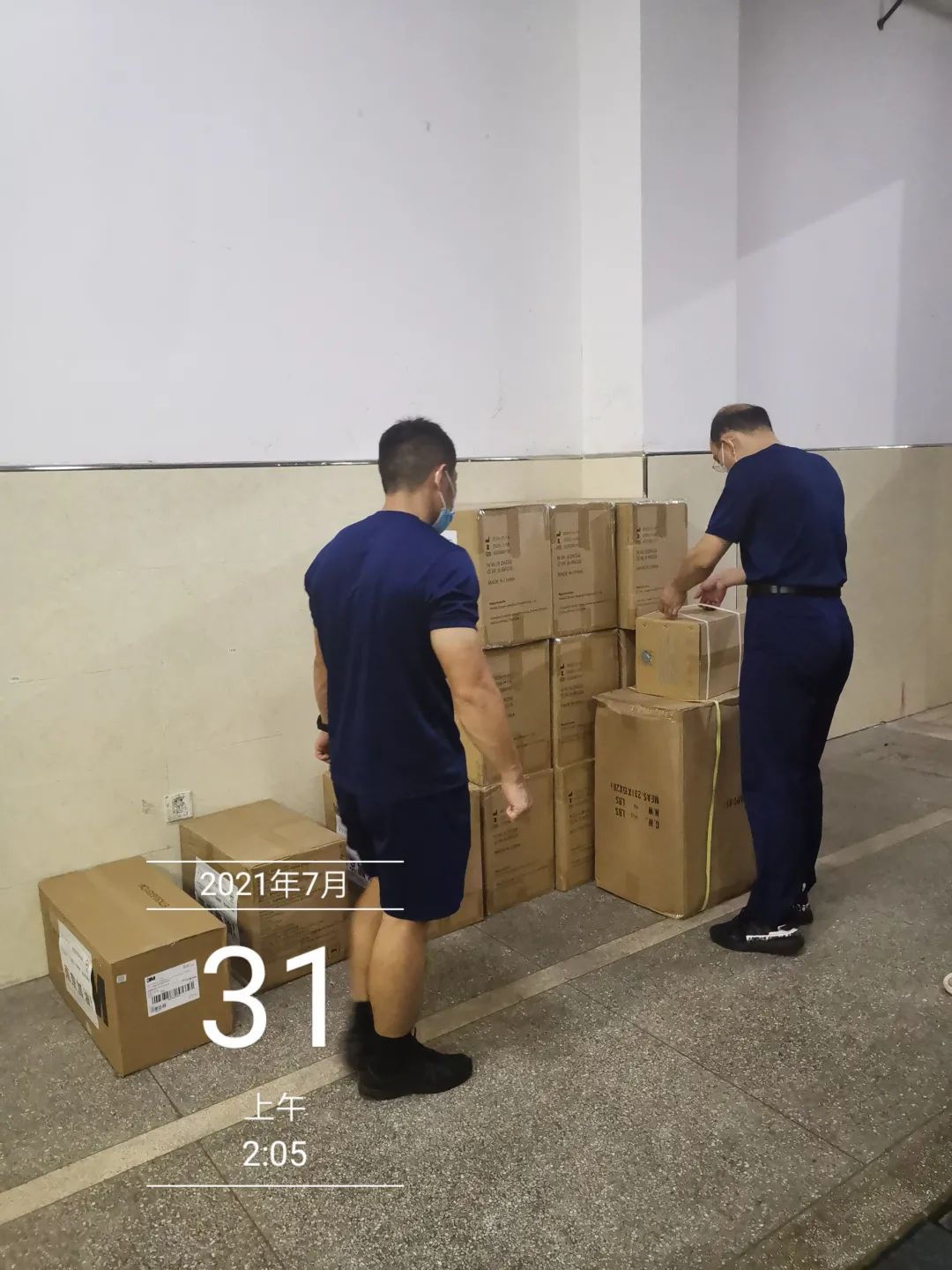 同一时间,郑州洪水刚过,新冠疫情又有新发。指挥部决定,马上在郑州前方建仓,储备防疫防汛物资。第一批10万只3M“非凡 高照”口罩于7月31日下午6点从上海运出,其中1万只将捐予郑州市公安局经济开发区分局的公安民警。