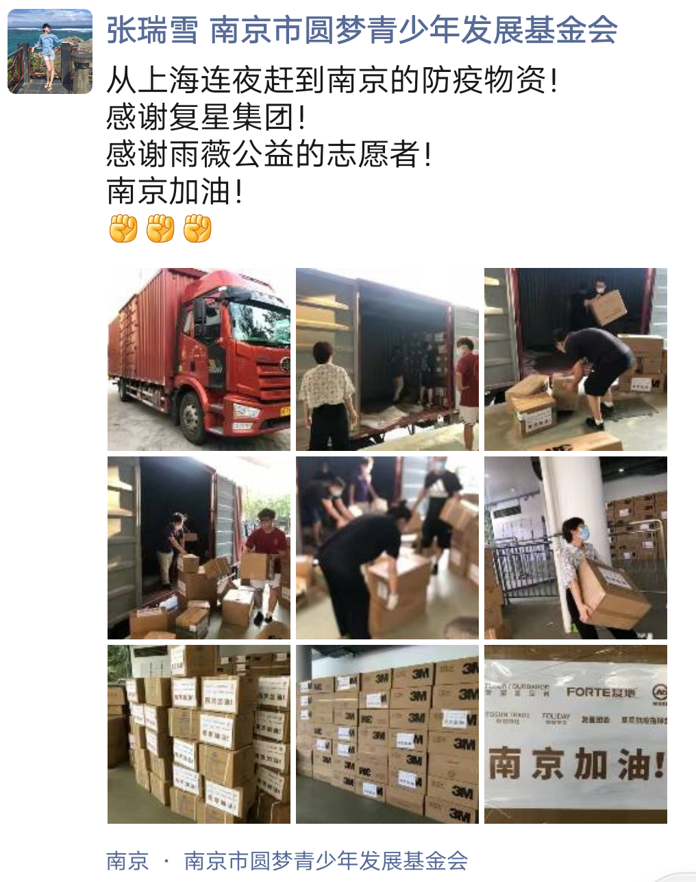 自此,第一批驰援南京的抗疫物资顺利送达。