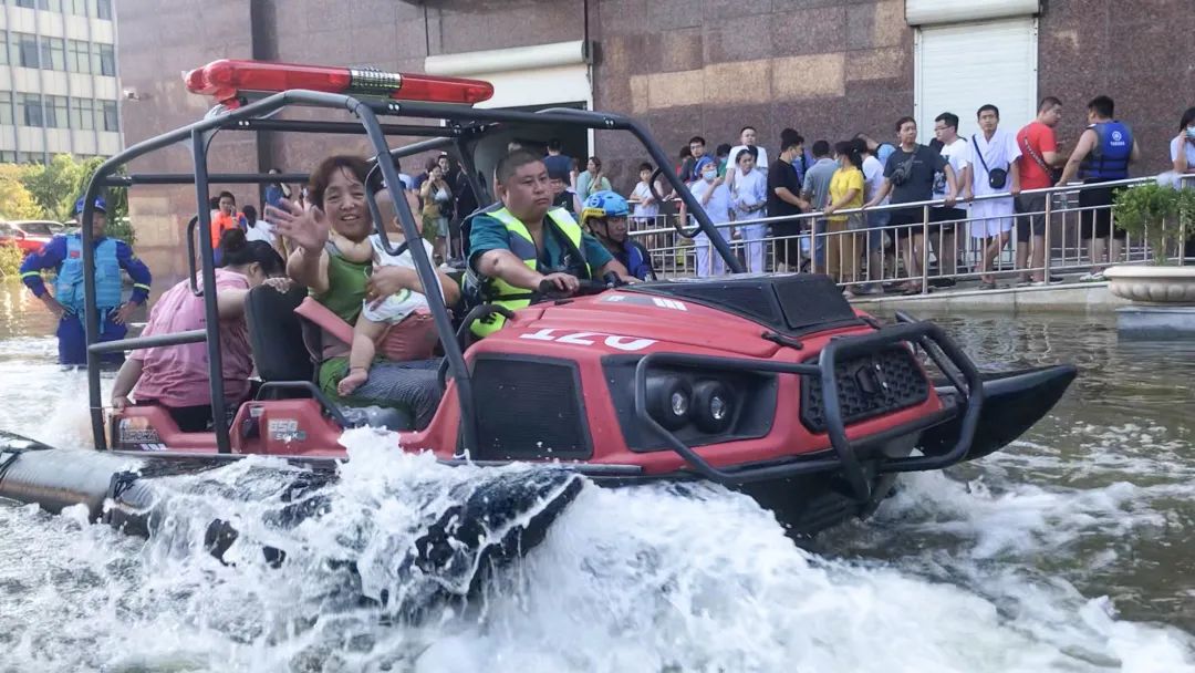 7月26日,非凡 捐赠的6辆全地形水陆两栖救援车全速行进抵达新乡医学院第一附属医院,不仅为受困群众带来大批救援物资,更重要的是帮助医院转运被困病患,上至80岁的老人下至8个月大的婴儿因此得救。