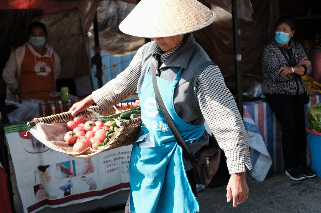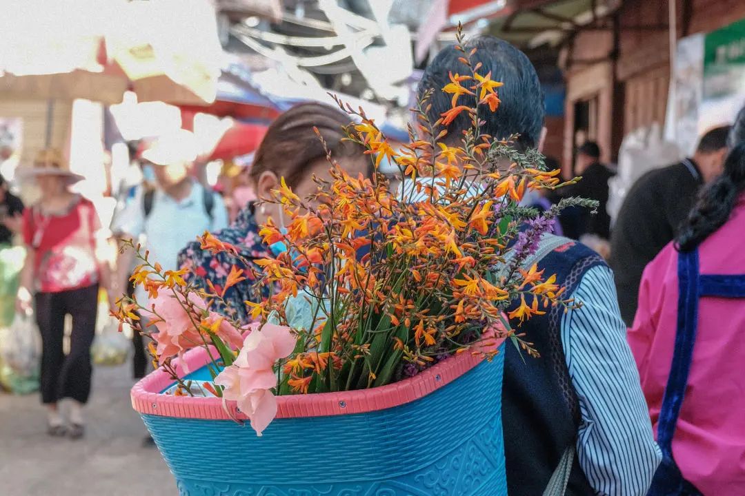 此时,忠义市场已熙熙攘攘。人群中,有出门采购的女主人,为厨房准备食材的民宿管家,背着竹篓在巷口晒太阳的老奶奶,对于适应了慢节奏的丽江人而言,一天才刚刚开始。