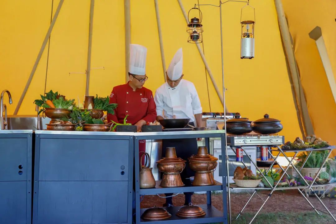 在复游城的Foliday雪山营地,Andy带着新鲜的食材归来,餐饮团队的其他成员已在为今天的内部晚宴忙碌着。