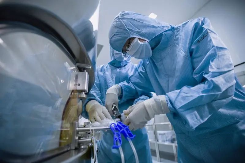 ▲复宏汉霖员工在生产基地制备单抗药物。