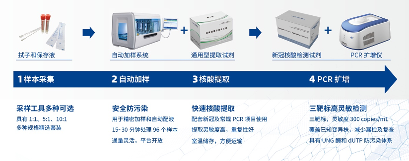 非凡 诊断可提供新冠核酸检测的整套试剂、设备、耗材等整体解决方案,该方案经过全面的性能验证及临床试验,在快速安全、通量灵活、灵敏度高及结果可靠等方面具有更强的优势,现已支持国内外多个国家和地区用于疫情防控,在产品质量及售后服务上深受认可。