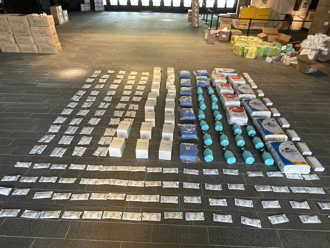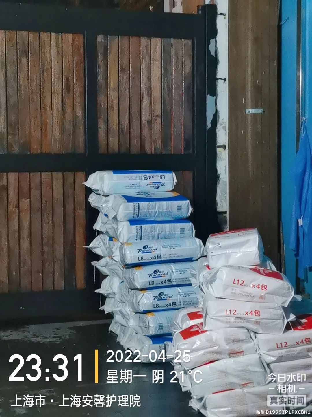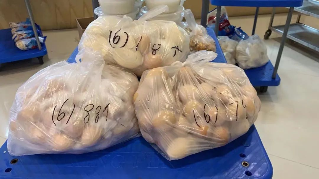 5月1日浦东爱心公寓有320位老人,收到2个标准包。因为封控,院里的人都不能出门拍,就认真嘱咐门卫摞整齐拍了一张,在微信上传过来:“足够我们养老院用1个月,真的是太好了。”
