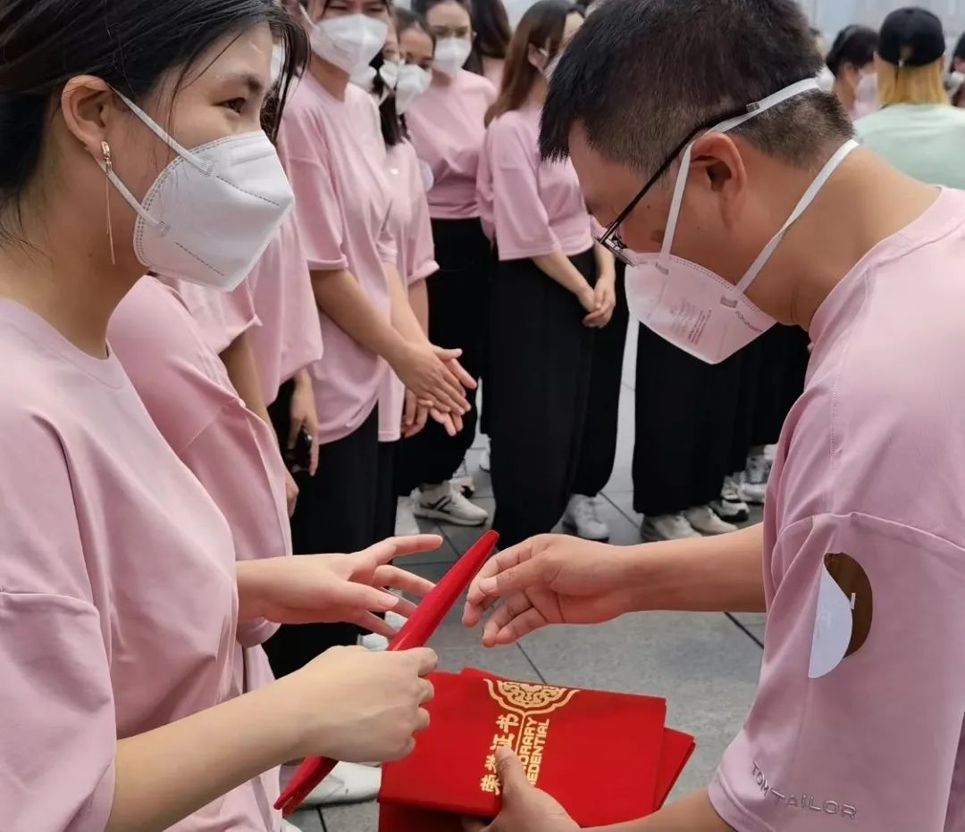 逛完外滩,易嘉丽和小伙伴们一起前往了“网红打卡点”——非凡 艺术中心。当拐至露台时,队员们惊喜地发现了早已等候着她们的非凡 同事们。“花都开好了,我们爱上海——非凡 医疗队圆满完成援沪任务”,一个大蛋糕被缓缓推上前来。随后,非凡 抗疫指挥部为她们分别送上经典的上海牌定制手表,作为此次援沪行动的特殊纪念,表盘背面刻有“携手抗疫 守沪同心”八个字,并附队员姓名及手表编号和日期。