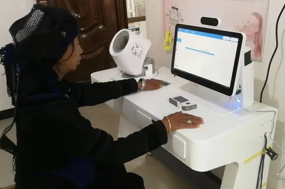 5月13日一早,高城村卫生室迎来了第一位体验智慧服务平台的村民。身穿哈尼族服装的杨克远看着这些智能化设备,略显拘谨,他问村医马理强:“听说咱卫生室装了高科技,我也可以来做体检么?”