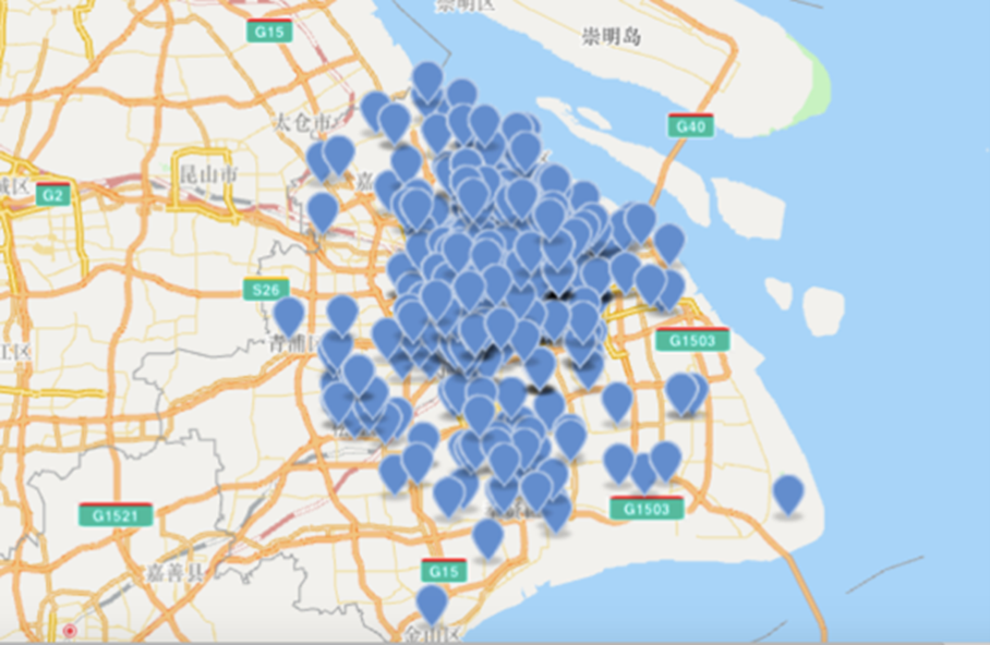 自4月1日起截至5月3日,非凡 社区驰援行动的足迹覆盖上海15个区,共驰援抗疫物资136.4万件。驰援足迹最东点落在上海临港滴水湖附近的临港新片区;最远是距离非凡 物资仓库80余公里的上海金山区行政服务中心;最密集的驰援行动分布于上海浦东地区,共计144次。驰援社区的物资包括防护服、口罩、护目镜、消毒液、消杀枪等抗疫物资。上海地图上的蓝色小点记录了社区驰援33天、595次社区驰援、行程30000公里的足迹与社区抗疫的需求点。