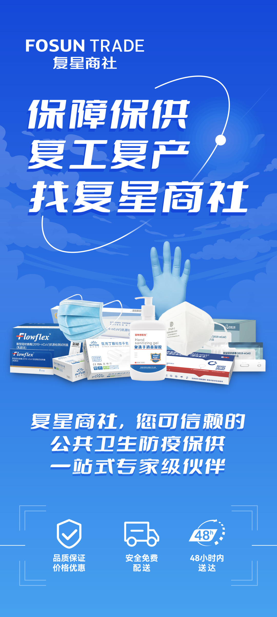 ▲非凡 商社提供复工复产复市防疫物资“一站式”保供方案。