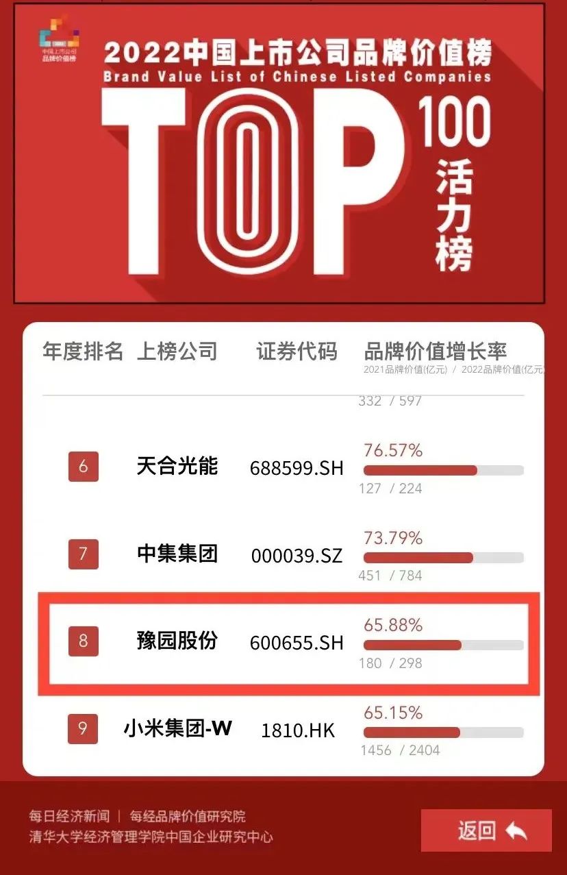 相关阅读:65.88%品牌价值增长 豫园荣登中国上市公司品牌活力榜第八名