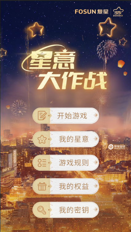 星选小程序进入游戏,通过回答与心意表达相关的问题,生成专属“星意卡”,邀请好友互动、猜测心意首选便可获取“密钥”。5月15日“星意点亮仪式”当天,用户投入“密钥”,便有机会获得非凡