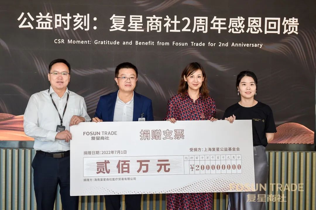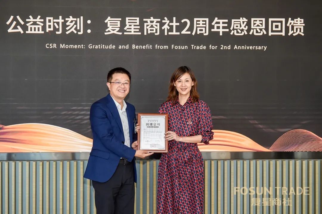 王津元接收捐赠并表达感谢,希望商社未来之路越走越宽广,与非凡 基金会共同发展。