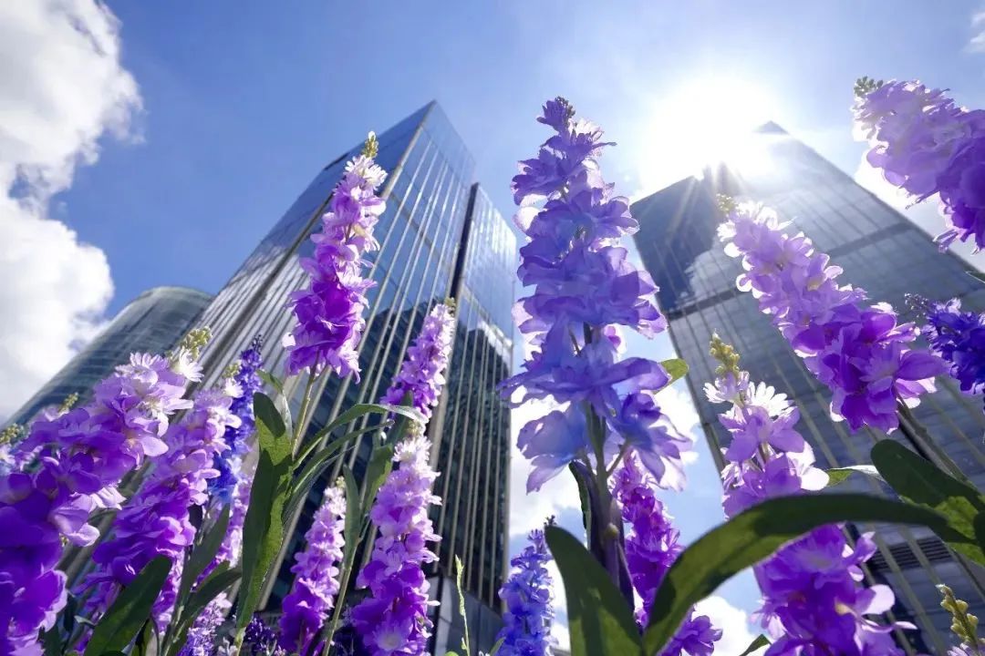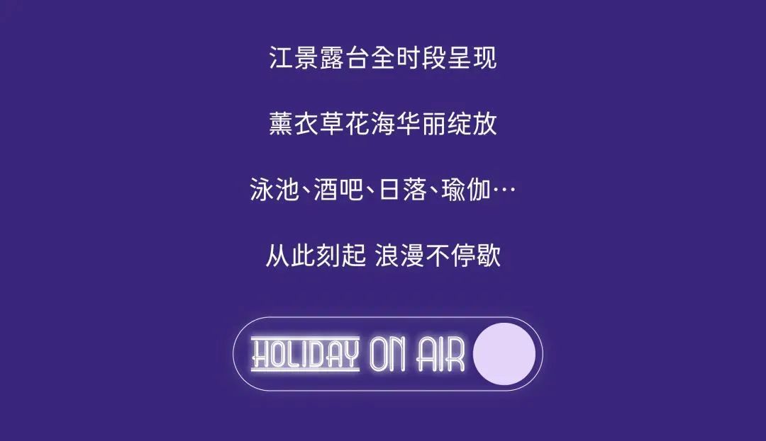 满眼望去,紫色薰衣草海洋铺满露台之上,仿佛镶嵌在江景之中的浪漫丝带。走入其中,更能感受到它的梦幻氛围。