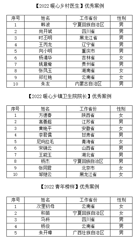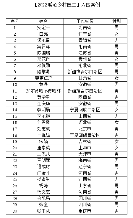 2022年暖心乡村医生案例征集活动结果公示