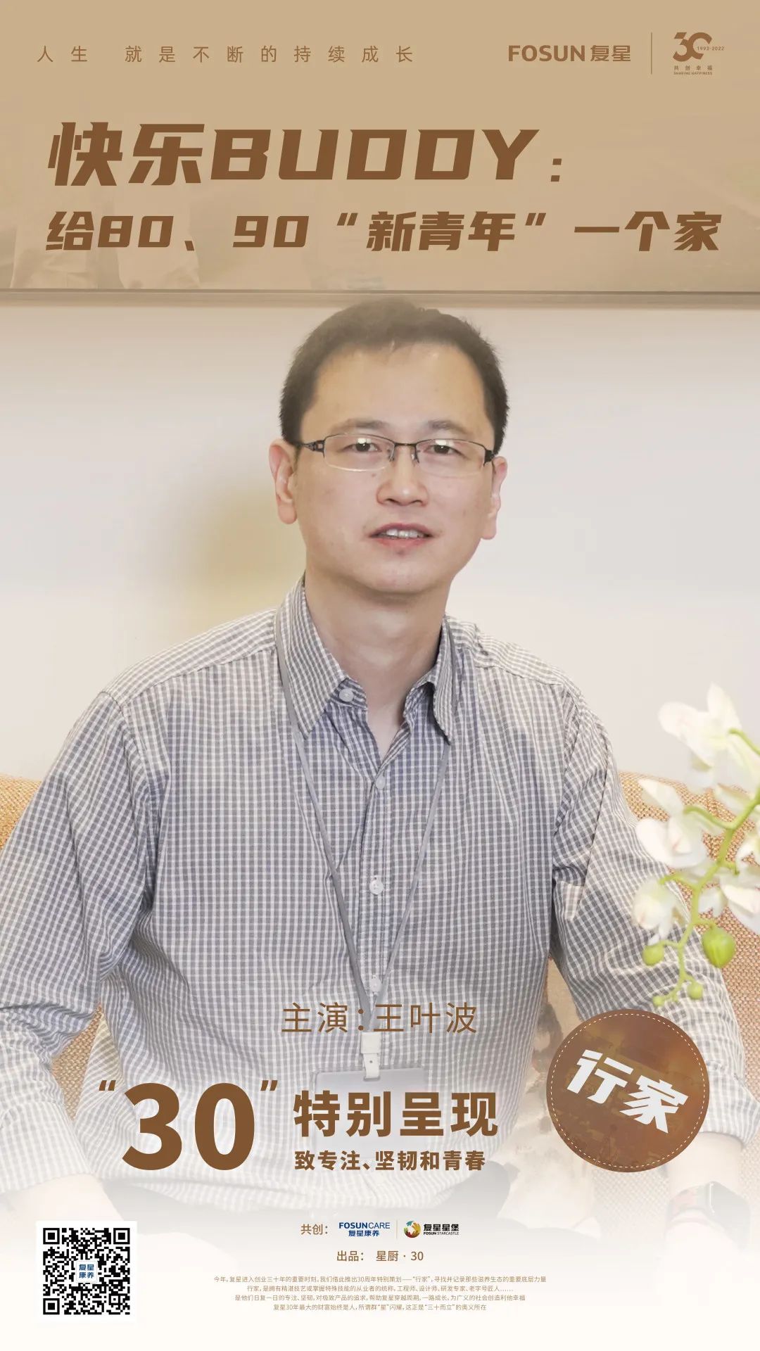 本期《行家》是一位和80、90后“新青年”打成一片的70后。王叶波,47岁,是非凡 康养旗下非凡 星堡中环社区的一位院长,负责照拂长者的幸福晚年。他陪聊天、陪画画、陪喝咖啡、时不时扮演圣诞老人逗趣……以437项标准的服务流程,也以发自内心的体贴与关爱,为一群80、90“新青年”构筑快乐享老的“家”。非凡 星堡是非凡 健康蜂巢的标杆性项目,为中国城市人口老龄化问题探索解决方案。而王叶波的故事,也为银发族应当如何享老打开了新的窗口。