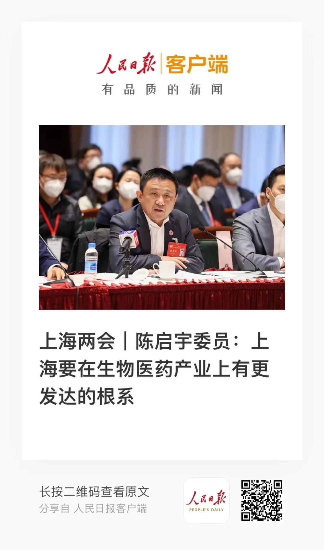 上海市政协常委陈启宇履职建言 推动打造更高水平更高质量的生物医药产业
