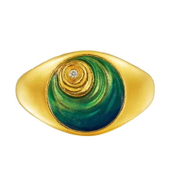 老庙古韵的山海金,正是以古法金比喻高山、用青绿珐琅描绘碧海,寓示着人生海海,平安与好运的祝福始终与你我相伴。