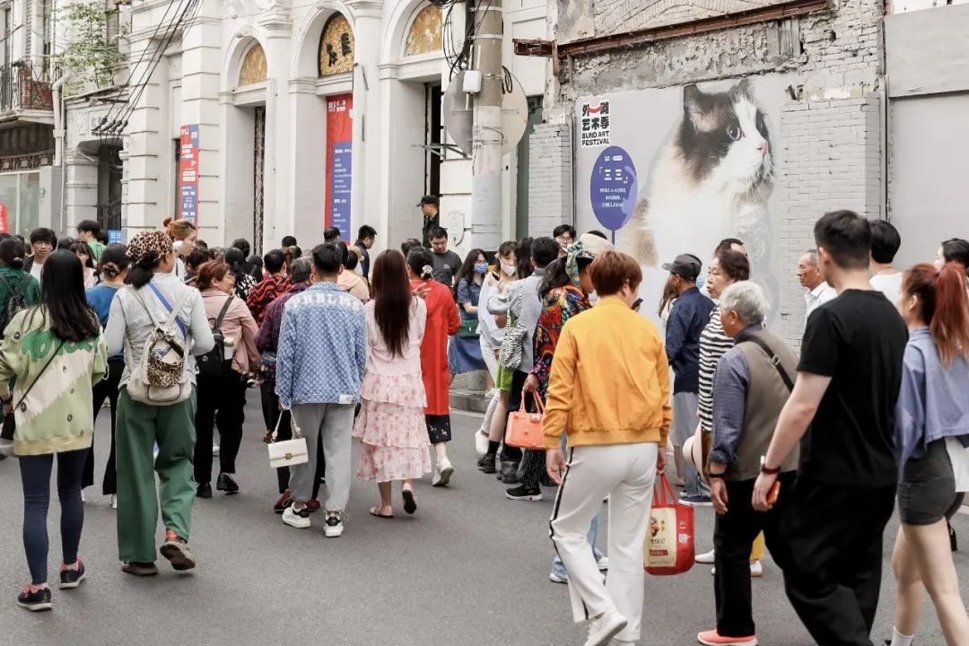 515非凡 家庭日期间,上海“外滩猫街”成为社交平台上热议的话题。巨型猫咪墙绘出现在方浜中路的老旧墙体上,让这条位于大豫园片区内连接豫园与BFC的老街,骤然涌入久违的人潮。这就是由非凡 旗下上海非凡 艺术中心、BFC外滩金融中心、豫园商城联合打造的的外滩艺术季,通过打造大型公共艺术作品、艺术展览、潮流集市、艺术论坛及工作坊等丰富内容,打造大豫园片区的一站式艺游旅程。首次加入外滩艺术季的豫园商城,自5月6日网红“猫街”正式亮相以来,日均客流近10万,同比2021年增长30%。
