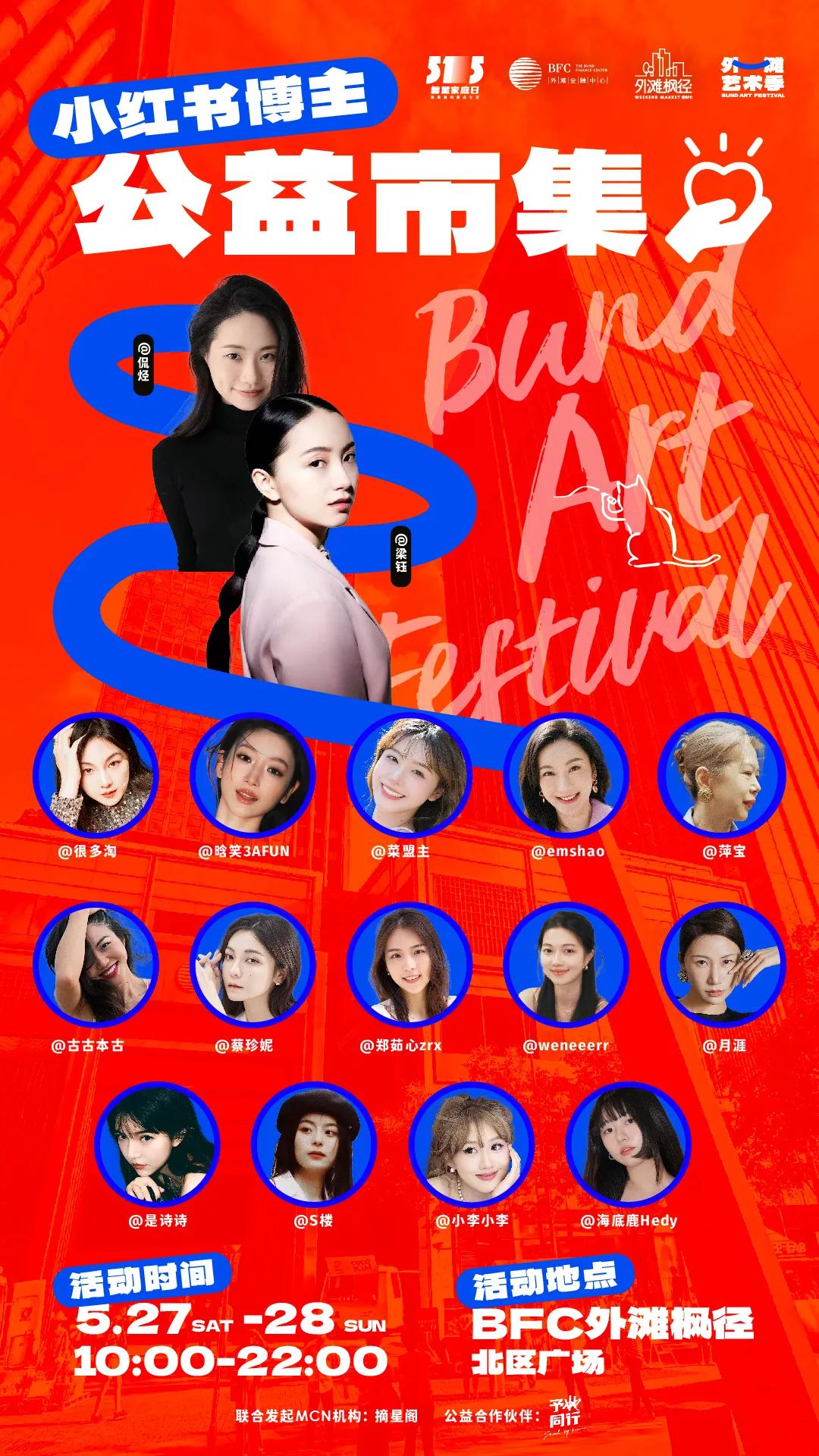 BFC外滩枫径联手头部MCN机构摘星阁、公益合作伙伴予她同行,在艺术季压轴呈现小红书博主公益市集。