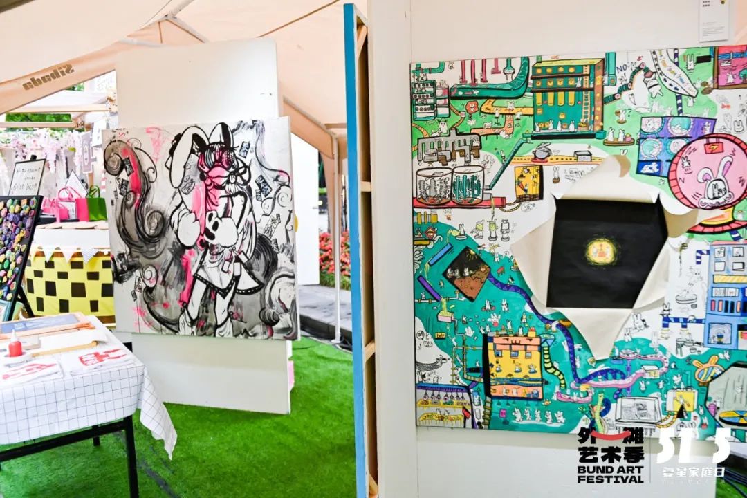 外滩枫径与玩得来WonderLine合作,邀请新锐艺术家、独立插画师姚品担任「艺术家一日摊主」。