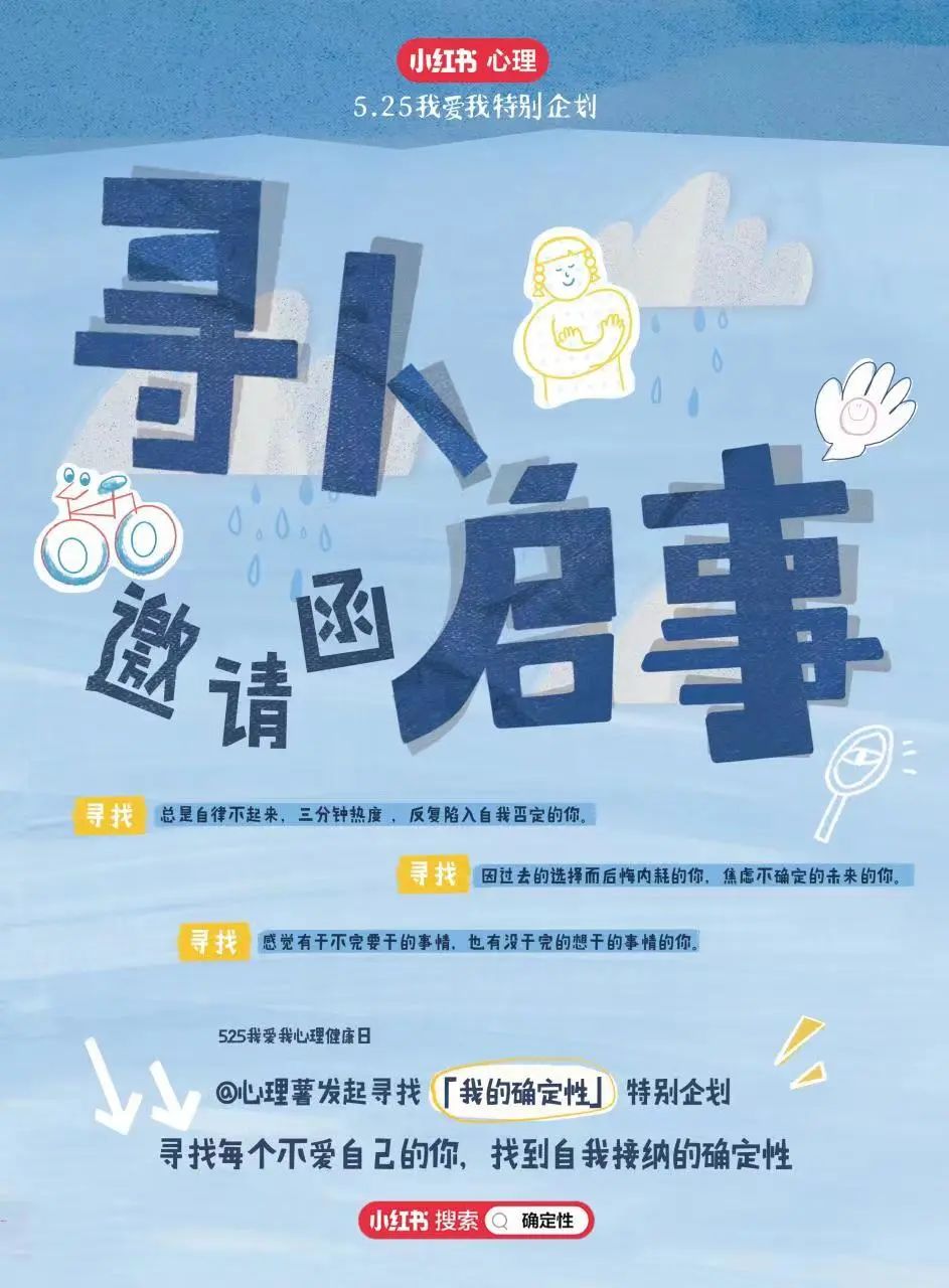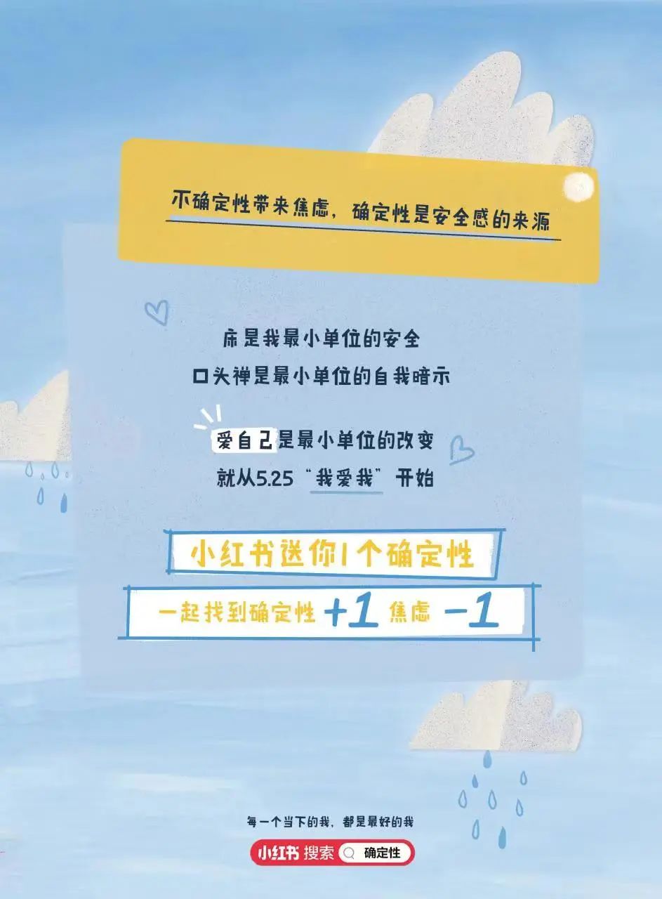 5月25日是我爱我心理健康日,BFC联合小红书@心理薯发起寻找「我的确定性」 特别企划,想要送你1个确定性:一起确定性+1,焦虑-1。