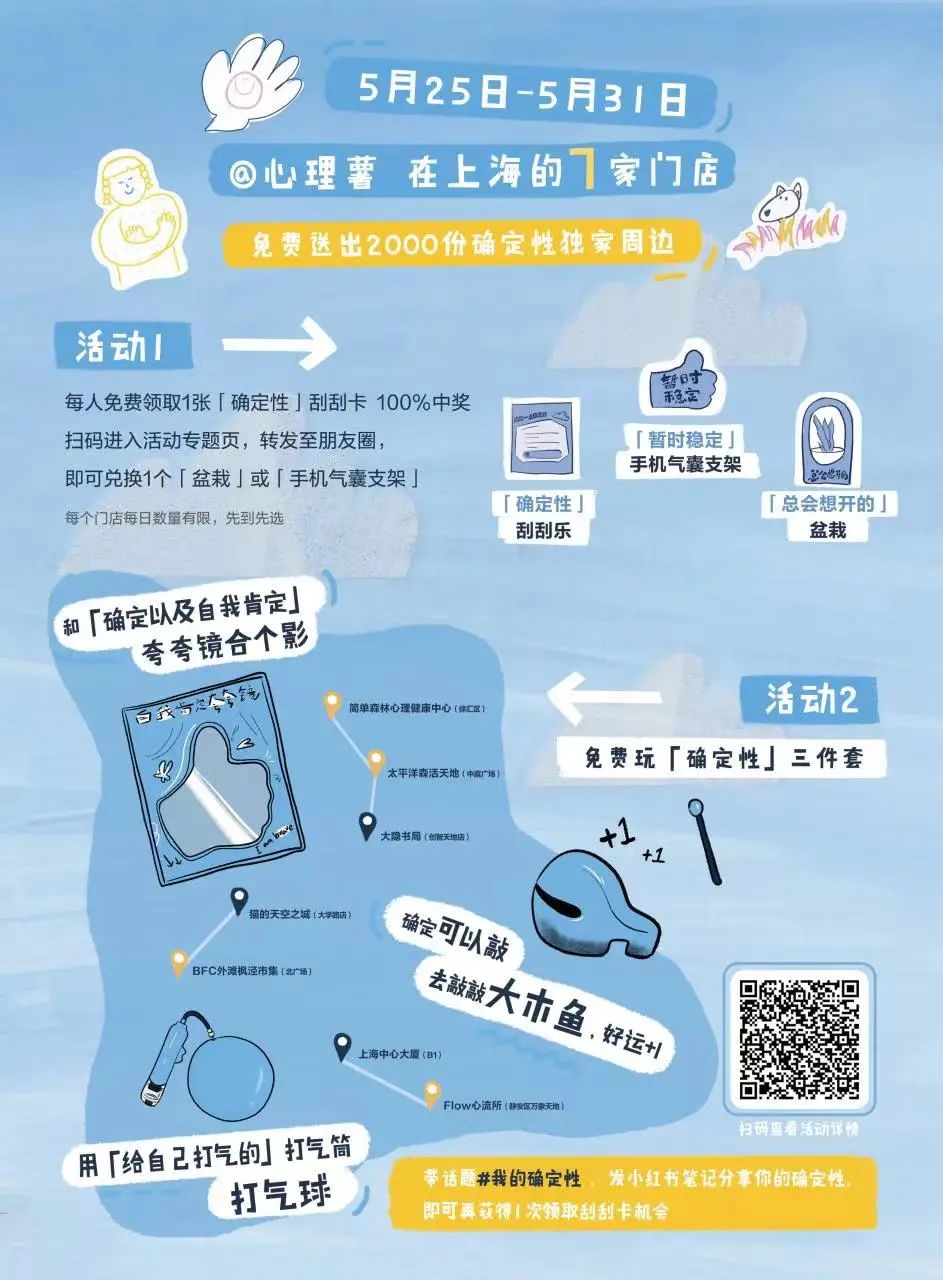 本周末,小红书@心理薯 将在BFC免费送「确定性独家周边」,还有超好玩的确定性三件套等你线下来打卡!