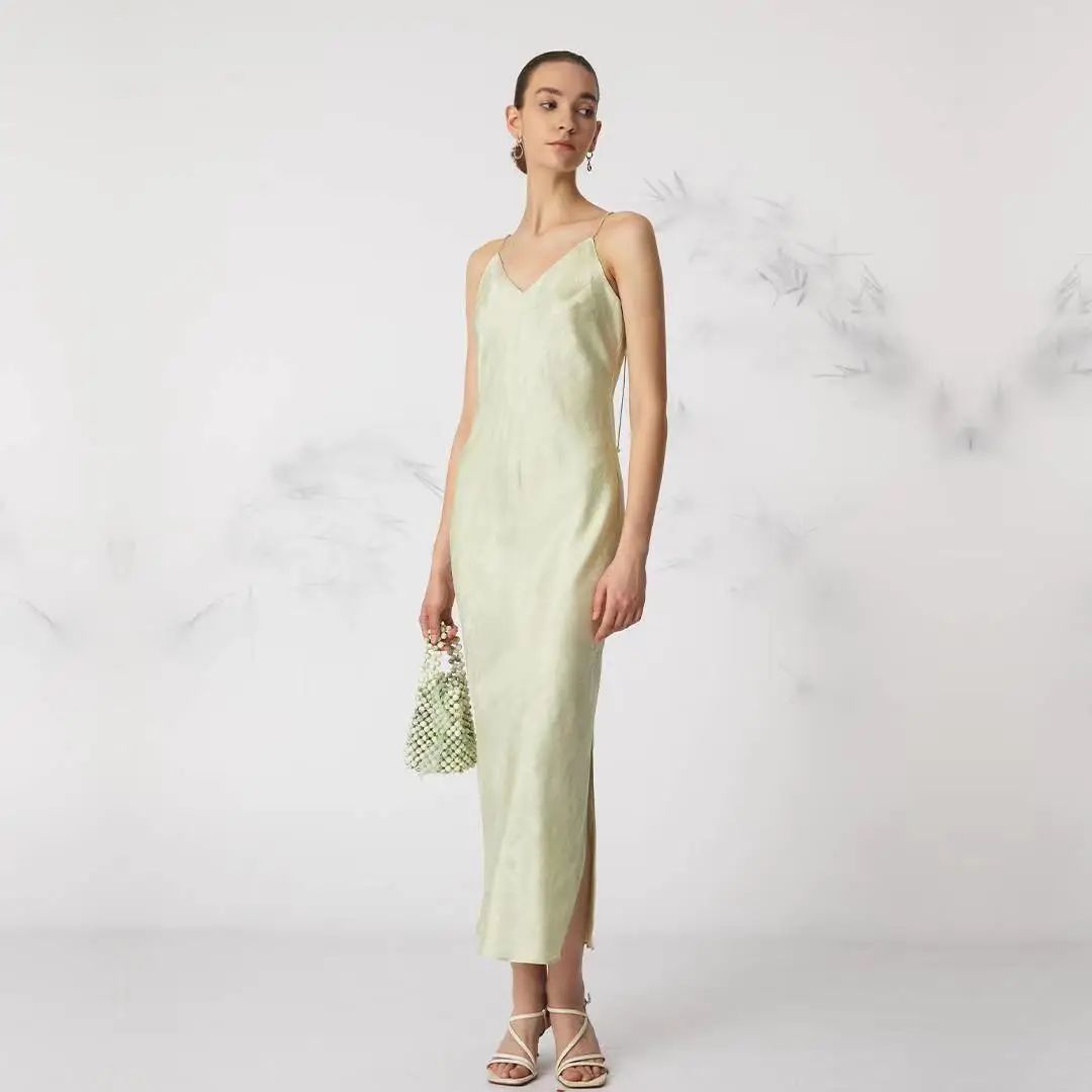 缎面提花6A级丝粘胚底无袖连衣裙