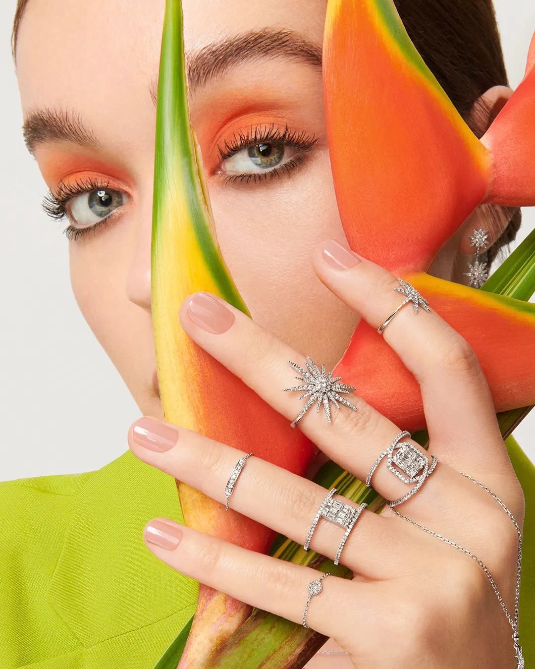 彩虹系列 18K金镶钻玫瑰金耳钉