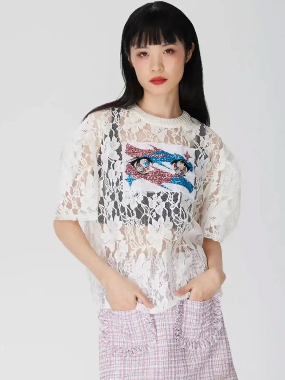 圆领镂空长袖套衫
