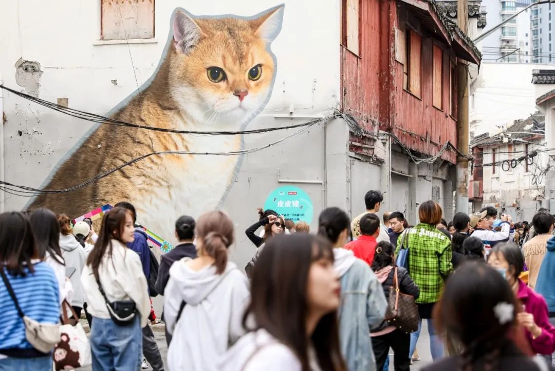 2023年5月,2023外滩艺术季中的公共艺术作品——“外滩猫街”亮相。方浜中路的围墙上,一群巨型萌动的猫咪吸引了诸多市民游客拍照打卡,百米的街道成为时尚网红地,激活老城厢的活力。“猫街”所在的方浜中路连通现有的豫园商城、BFC外滩金融中心,以及即将启动建设的豫园二期项目等。它们共同组成“大豫园”片区将是上海城市更新的力作。目前,“大豫园片区”的规划已经基本完成,建成后将是一个总建面超过100万平米的超级文化商业综合体,一处 “极具东方生活美学魅力的全球时尚文化秀场”,助力上海建设成为第六大“世界时尚之都”,成为“全球向中国,中国向世界”的桥头堡。