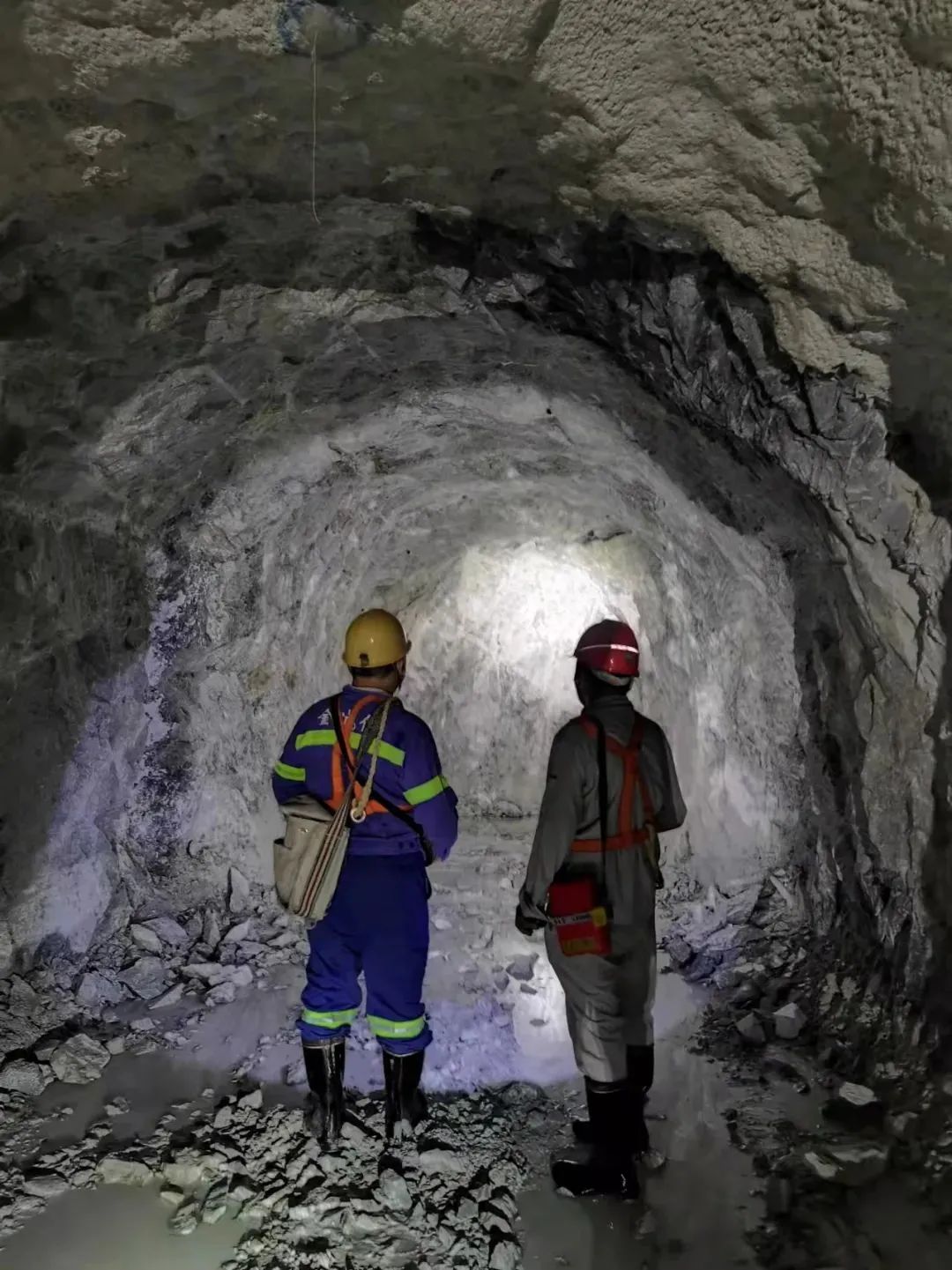 3月,海南矿业石碌铁矿的地下掘进巷道中,两名工作人员正在观察、研究地质情况。石碌铁矿中段采矿工程建设项目正在施工中,该项目将进一步提升海南矿业的铁矿石产量。