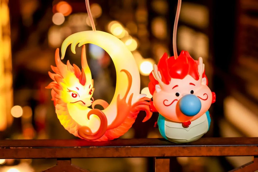 中国自古就有元宵提灯,祈愿风调雨顺、五谷丰登之说。提龙灯祈福,许龙年心愿,成为今年逛豫园灯会不可或缺的“装备”。去年,豫园原创月神兔灯笼曾一灯难求,今年推出的2款手提国风龙灯,也已在预售期显现火爆势头。金豫龙灯瑞瑞,以“汉玉龙”为造型,呈“C形”盘龙姿态,飞龙跃海;龙鱼嘟嘟灯笼则是来自同款灯组,作为鱼龙三兄弟中的老二,微胖的身材尽显福气,吹着泡泡,寓意“神龙吐珠”,传递喜气与平安。