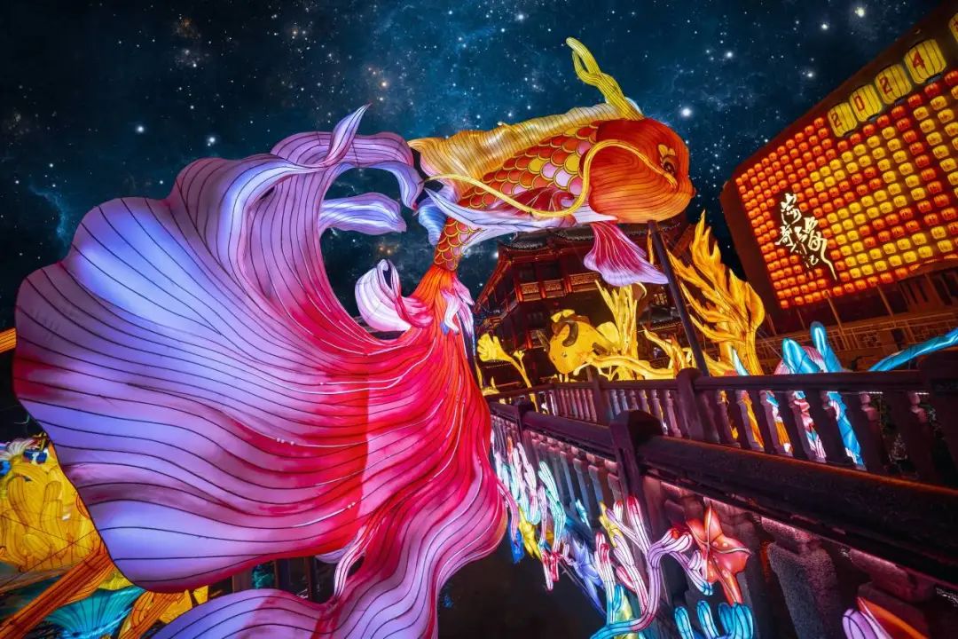 值得一提的是,豫园灯会举办29届以来,首次走出国门,落地法国巴黎,并受到当地游客的热烈欢迎。2023年12月15日起,60架大型灯组和2000余盏华灯,落地“巴黎风情园”,向海外游客呈现了一个璀璨炫目的中国奇幻世界。2024年是中法建交60周年,在上海、巴黎两座城市,浸润中国传统文化的“豫园灯会”将实现同频共振。