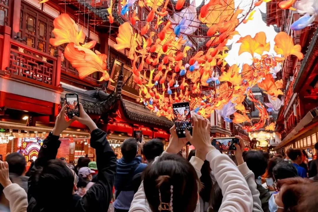 春节长假期间,“灯会+夜游”掀起出行风潮。被誉为“中式年味儿天花板”的上海豫园灯会异常火热,吸引客流近70万人次,带动豫园商圈销售比去年同期上涨50%。此外,豫园灯会也首次走进辽宁沈阳盛京龙城、如东复地上河印巷街区,带旺商圈热度攀升。