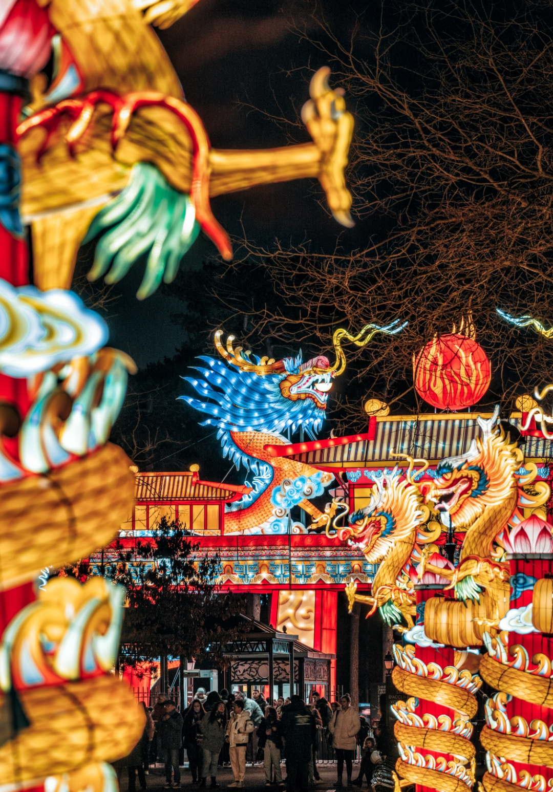 2023年12月15日起,来自中国上海豫园灯会的60架大型灯组和2000余盏华灯,落地法国“巴黎风情园”。主题为“山海有灵”的法国豫园灯会,以成书于2000多年前的中国古代百科全书《山海经》为母本,将精神健硕的龙马、扶摇万里的鲲鹏、呼风唤雨的应龙、气质优雅的白鹿等各种山海瑞兽融入60架灯组和2000余盏彩灯中,展示具有东方灵性的迎新祈福方式,向海外游客呈现了一个璀璨炫目的中国奇幻世界。