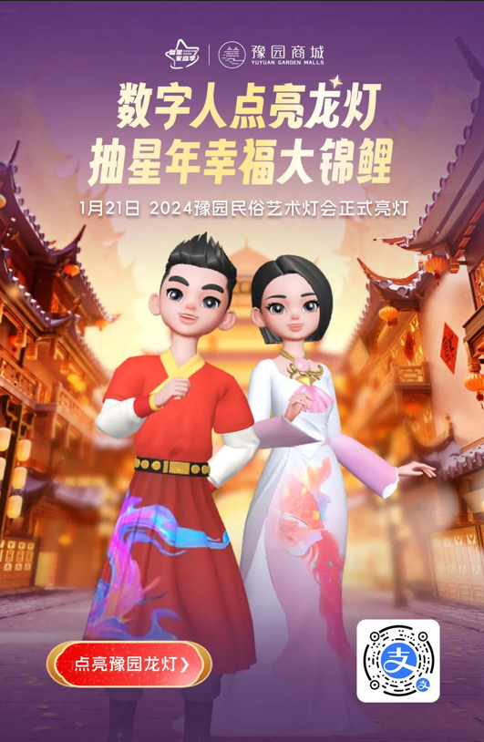 其中,豫园率先在线下商圈运用支付宝开放的亚运开幕式同款“AR互动+数字人”技术,打造了全球首个数字人参与亮灯的数字灯会。截至目前,超100万人次通过支付宝点亮龙灯祈福、用AR扫码体验虚实结合的“山海奇豫”;逾150万人观看豫园AR直播,足不出户也能观赏豫园灯会,体验豫园热闹年景;非凡 旗下老庙通过支付宝端线上直播,销售额累计超6000万,年货节期间单场直播就拿下近900万销售额。