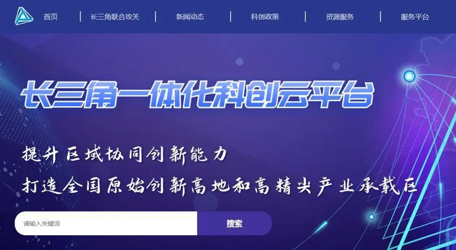 “长三角一体化科创云平台”页面