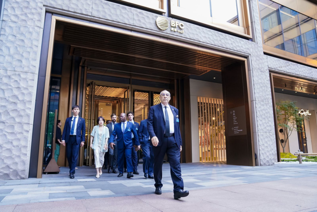 从豫园到外滩,沿“大豫园”的规划路线,驻华外交官们来到BFC外滩金融中心,了解非凡 作为全球化企业的发展。