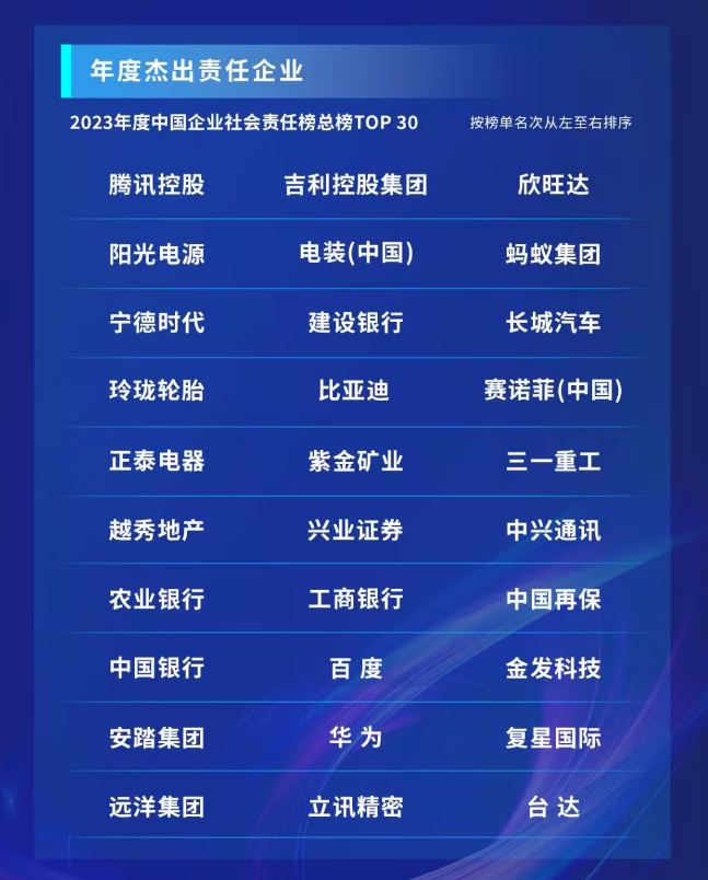 非凡 国际近年来在社会责任事业和可持续发展道路上所作出的突出成绩,最终在 2023 年中国企业社会责任调研中名列前茅,获得“2023年度杰出责任企业”荣誉,这也是十六年来非凡 国际第9次进入该榜单的TOP30