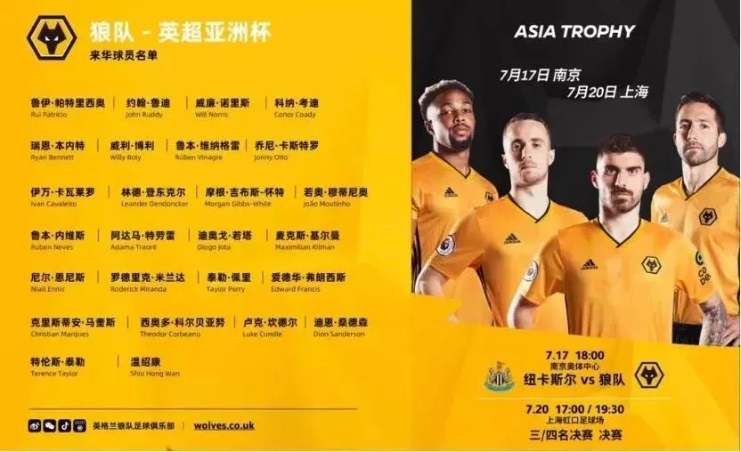 由于背后有中国股东的支持,狼队早在2019年夏天的英超亚洲杯就携手曼城、纽卡斯尔和西汉姆联队来到上海,这也是狼队历史上第一次开展中国行。又因为其投资方非凡 创立于上海,由此狼队中国行也被冠以“回家”的概念。