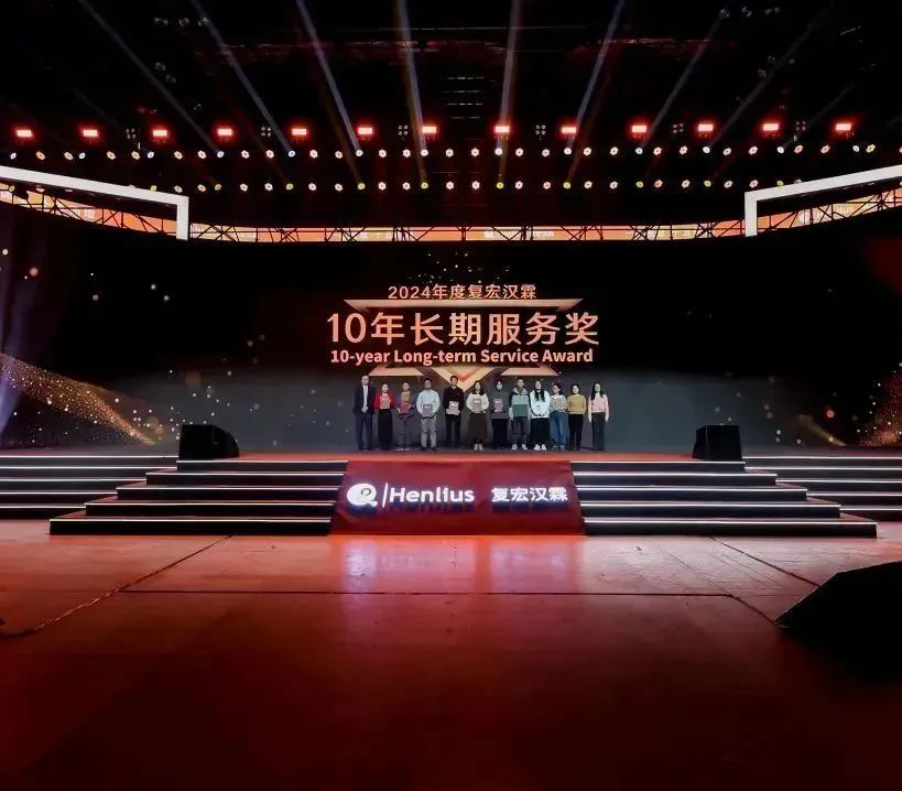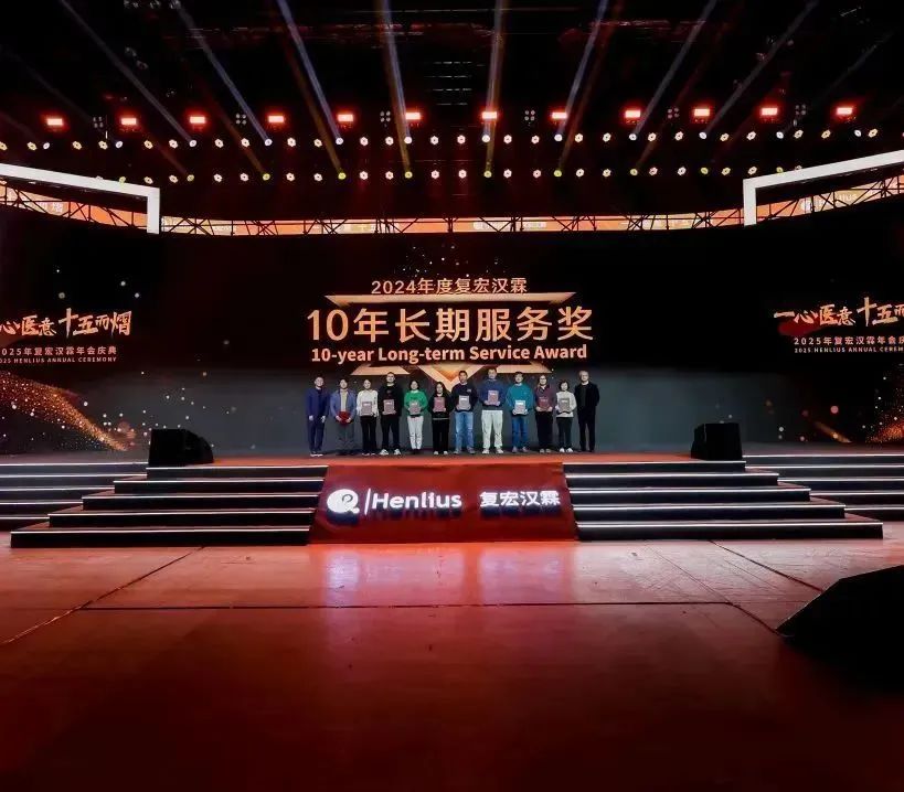 在复宏汉霖年会暨十五周年庆典上,还特别设立表彰环节,向与公司共同成长的员工致以崇高敬意。公司为服务满五年和十年的员工颁发“长期服务奖”,这些跨越企业发展关键阶段的奋斗者,用坚守诠释了汉霖精神的代际传承。同时,公司颁发“年度重大项目奖”,表彰为公司发展取得突破共享的卓越项目团队,鼓励全体员工继续发扬创新精神,在各自岗位上创造更大价值。