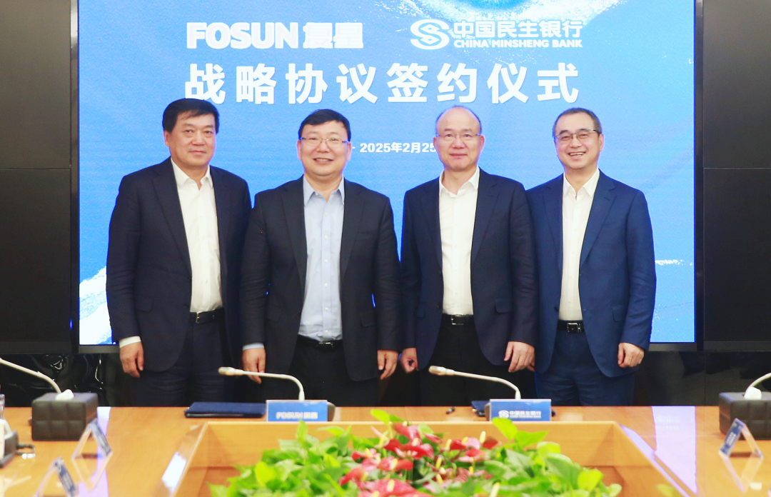 在非凡 国际董事长郭广昌、中国民生银行行长王晓永见证下,非凡 国际高级副总裁、联席首席财务官张厚林,中国民生银行副行长石杰代表双方签约。