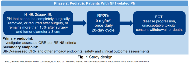 I 型神经纤维瘤病(NF1)是一种常染色体显性遗传性肿瘤性疾病,常累及多系统。约 30%-50% 的患者伴发丛状神经纤维瘤(PN),可导致毁容、疼痛、身体功能障碍等严重问题并显著影响患者生活质量。PN 患者大多在幼年时期起病,且在生长发育关键的儿童期疾病进展更为迅速,因此儿童 NF1-PN 的治疗需求尤为迫切2。