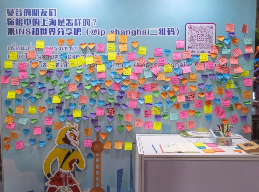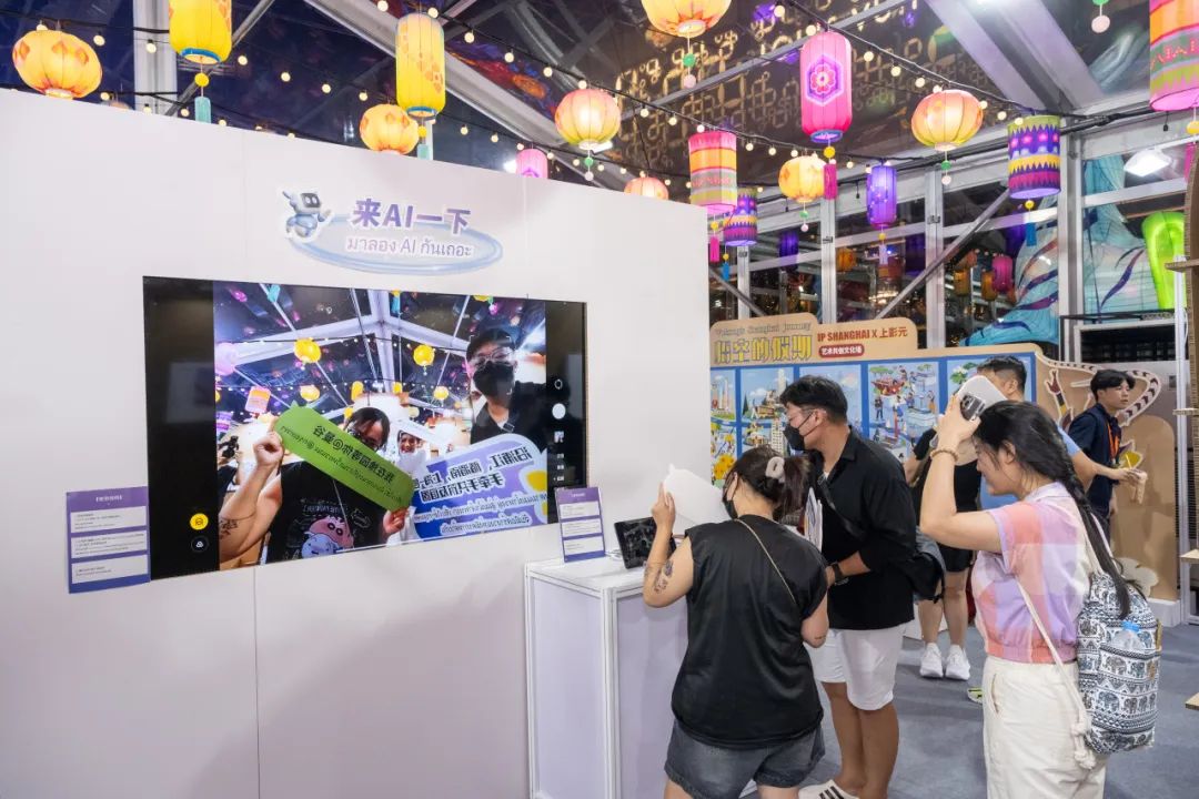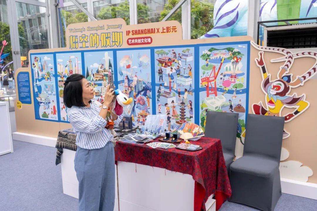 在“上海-曼谷手牵手”打卡点,参观者们仿佛拥有神奇魔力,可实现上海豫园与曼谷大皇宫一秒穿越,领略双城各有的东方生活美学,感受不同文化碰撞出的独特火花。在“悟空的假期”打卡点,上海经典动画IP《大闹天宫》中的主角孙悟空化身热情向导,带领大家从吴淞口腾空跃起,沿黄浦江翻着筋斗云,在外滩张望,在苏河两岸穿行,在滨江嬉戏,在东方明珠登高,还与路人亲切互动“侬好!萨瓦迪卡!”,让参观者仿佛置身于一场奇幻的冒险之旅。