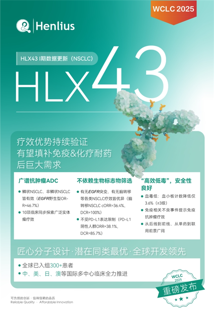 ▲世界肺癌大会(WCLC)于9月6-9日在西班牙巴塞罗那举行,复宏汉霖PD-L1 ADC HLX43的I期临床更新数据作为肺癌前沿研究代表亮相